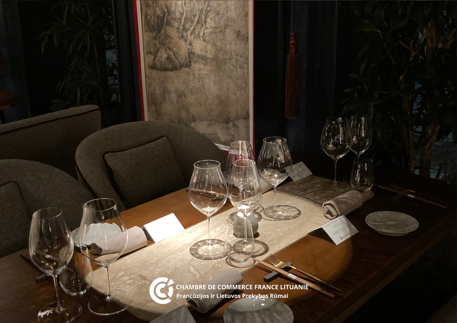 We were especially pleased to hold this event at HeJi restaurant, which is part of UAB Olivia Holding (Esperanza lake resort), one of the newest Golden Patron Members of the French-Lithuanian Chamber of Commerce. Hosting this dinner at one of our members’ venues reflects the strength and diversity of our network while highlighting the excellence of businesses contributing to the Franco-Lithuanian economic landscape.